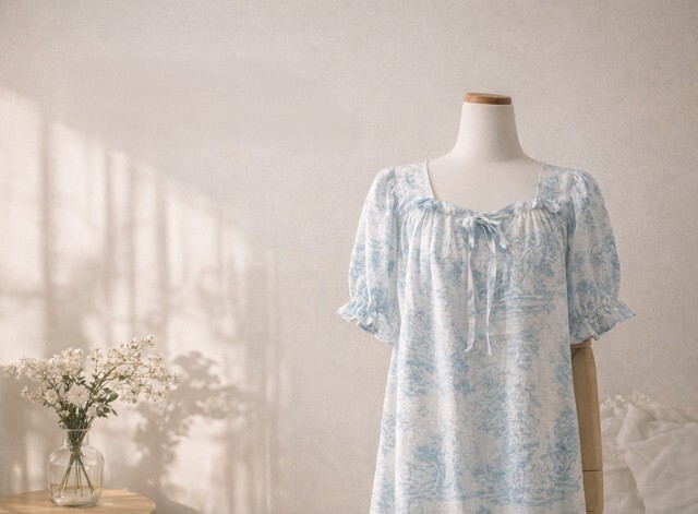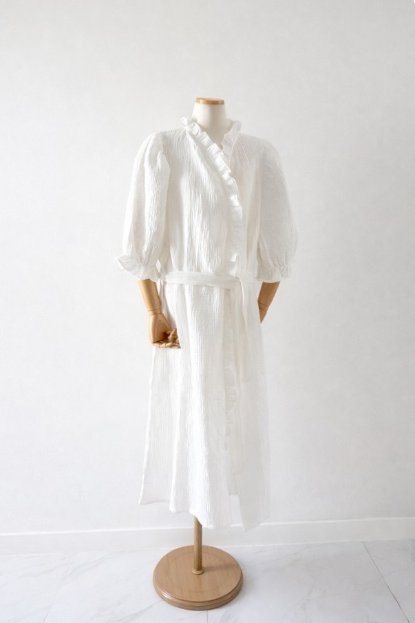 보타부 로맨틱 코튼 랩 로브 원피스