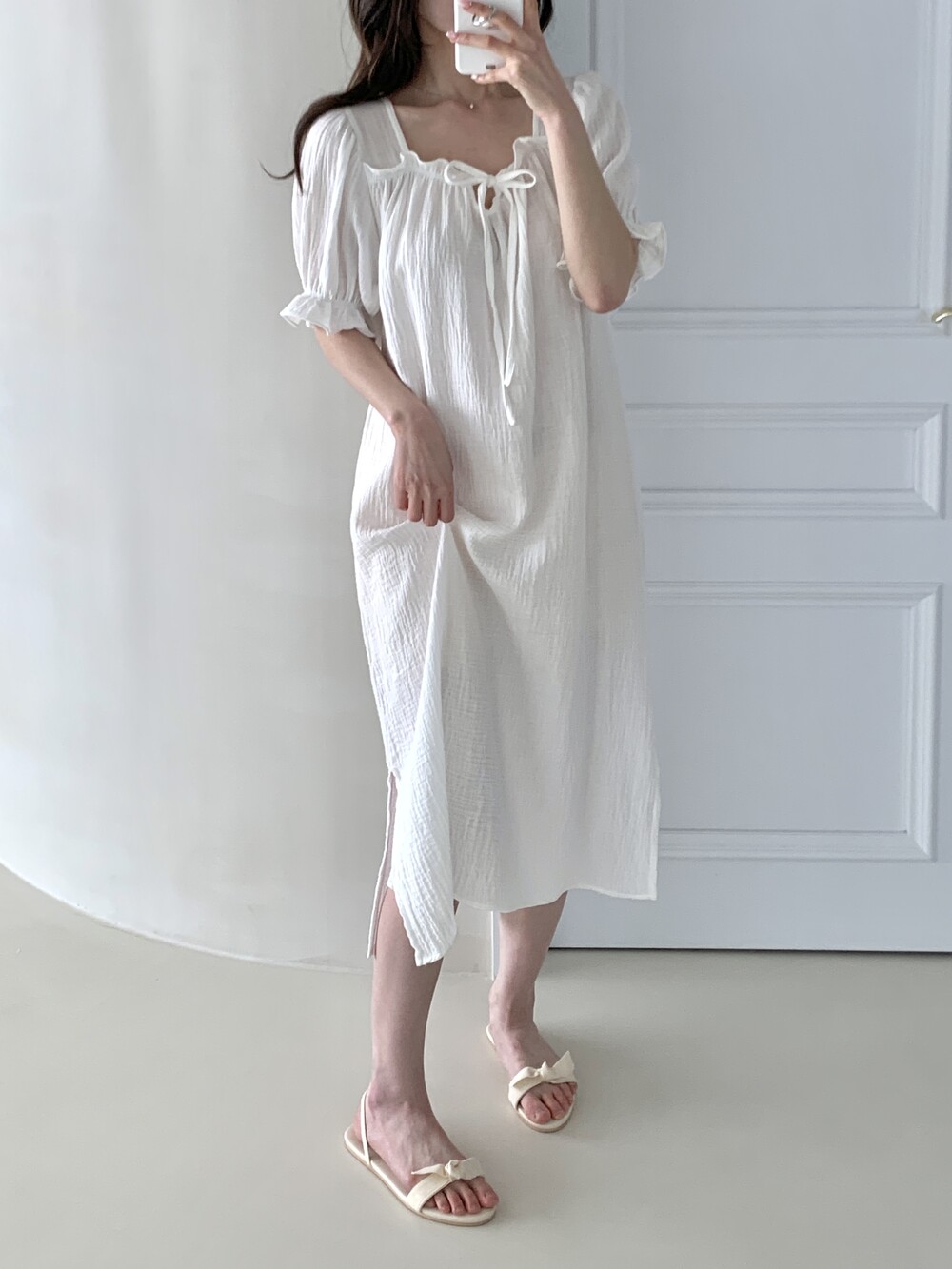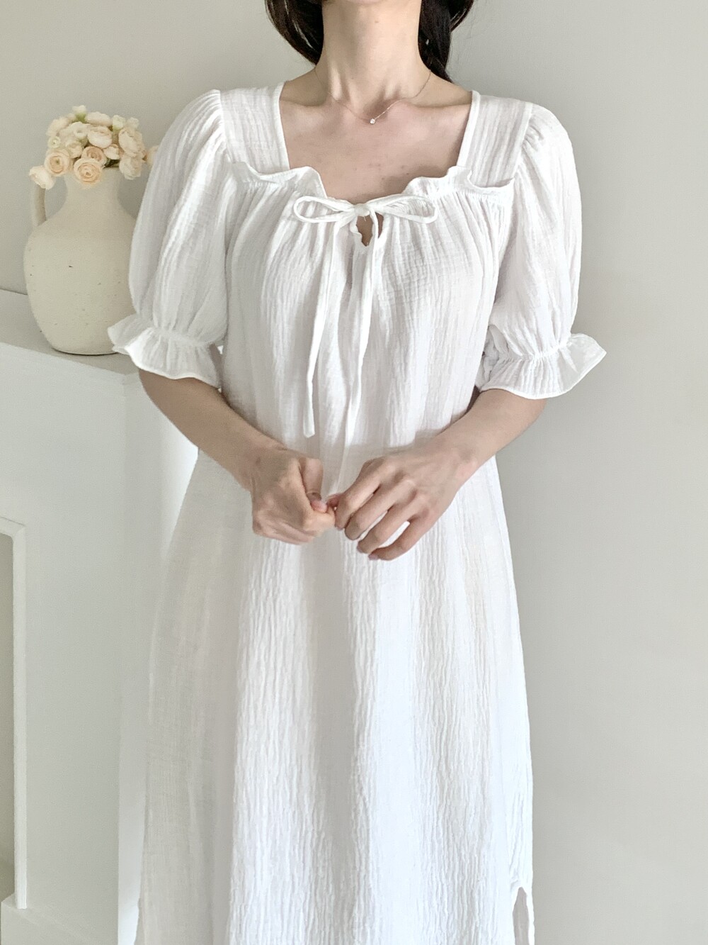 거즈 코튼 특유의 가볍고 포근한 촉감과 우수한 통기성으로 여름에도 쾌적하게 착용 가능합니다.