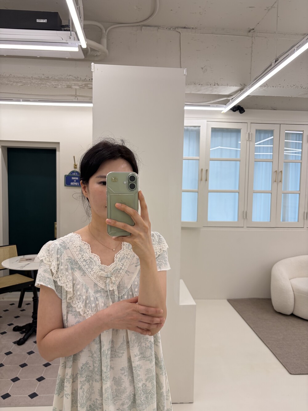 ✔ 넥라인 레이스 디테일로 은은한 여성스러움