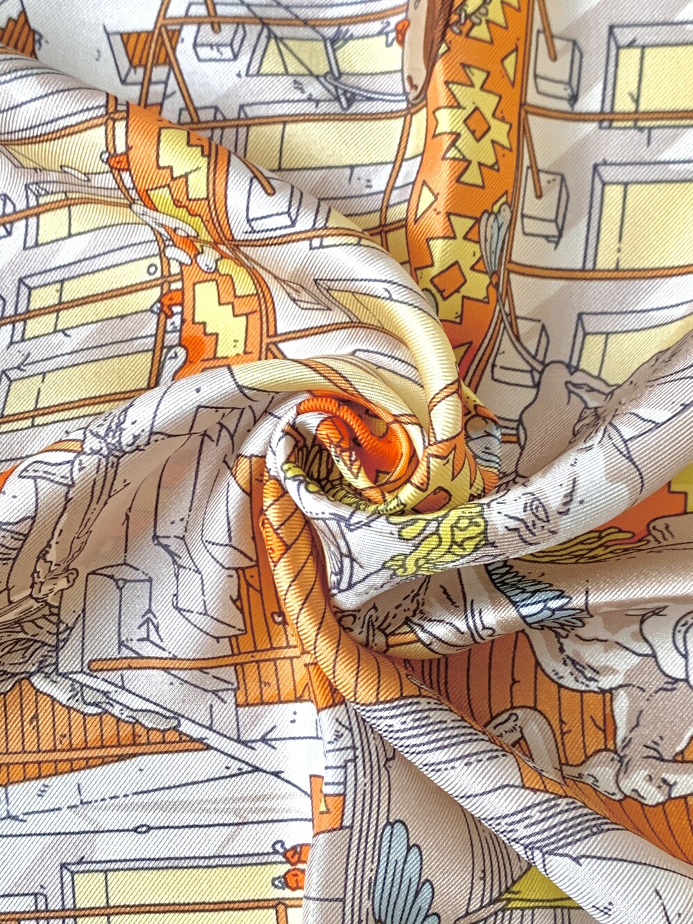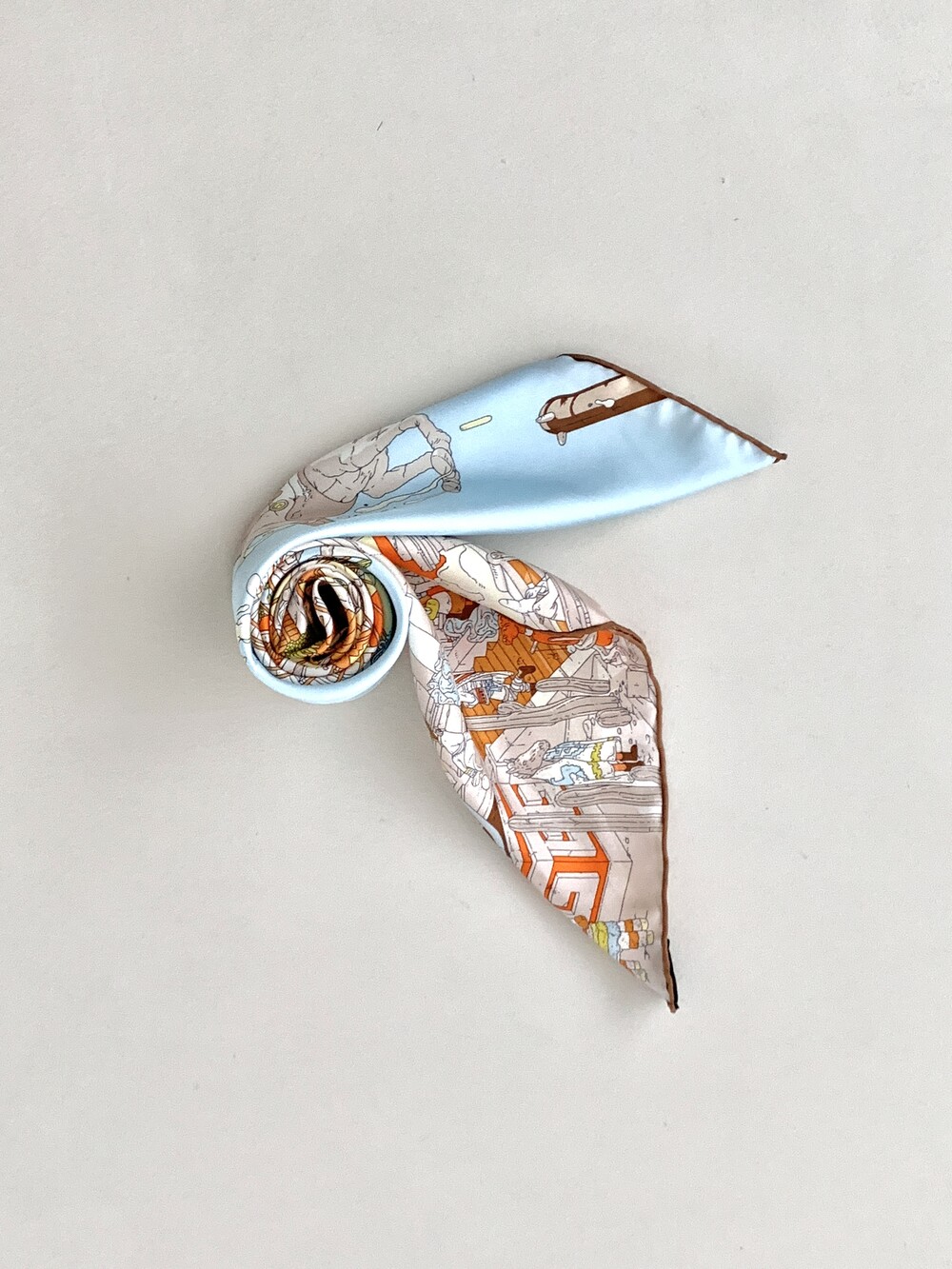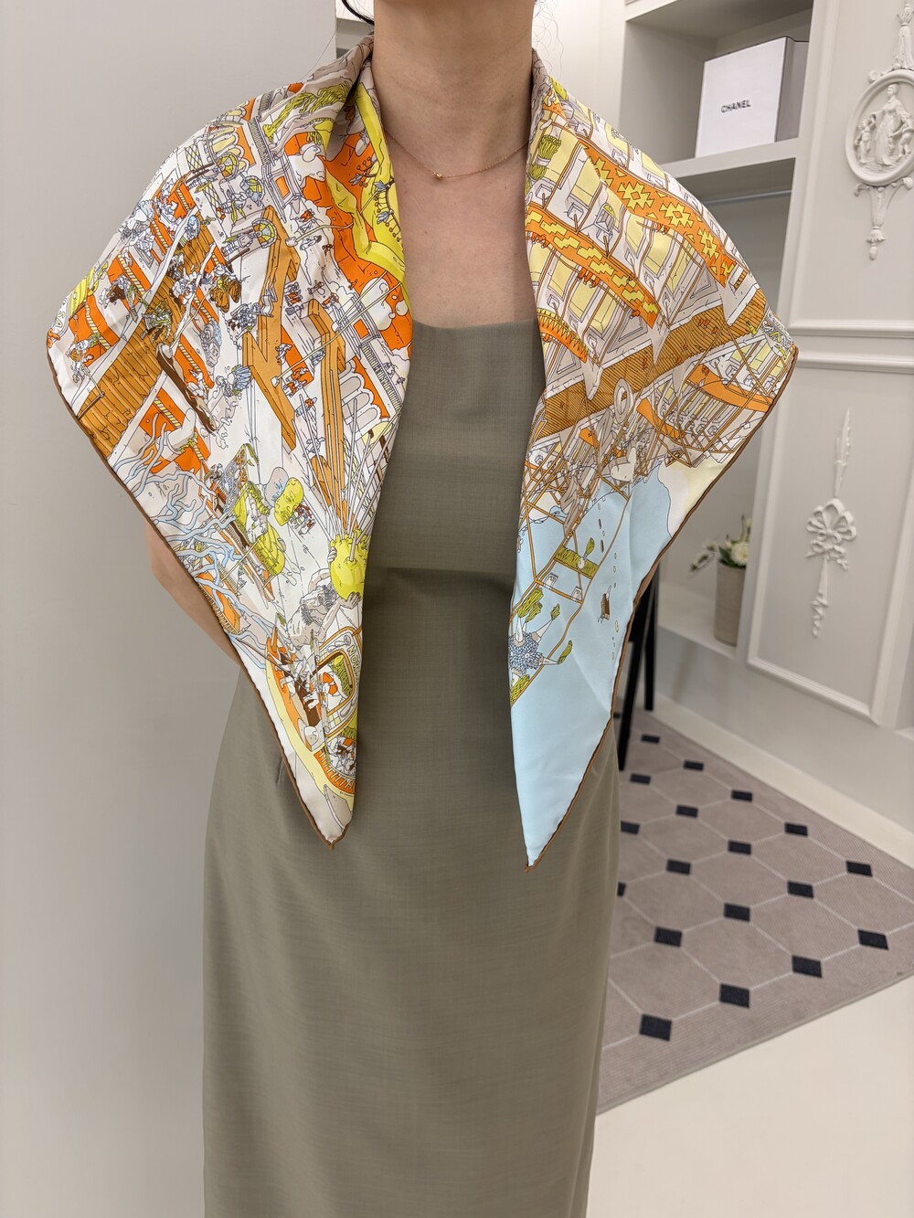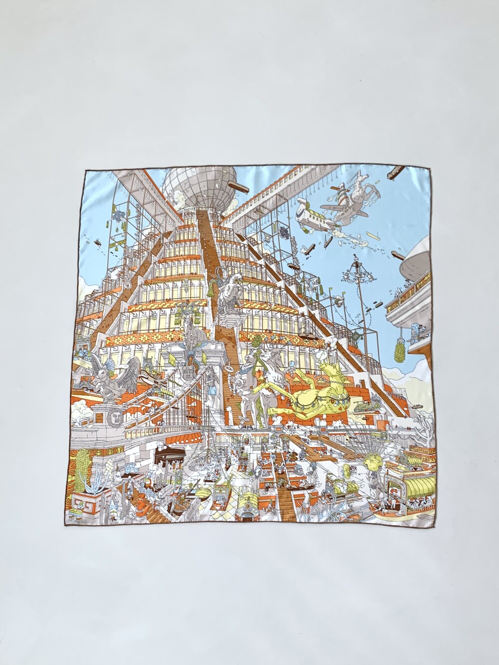 플루메 조각상에서 영감을 받은감각적인 아트워크가 담긴 실크 까레 스카프입니다.