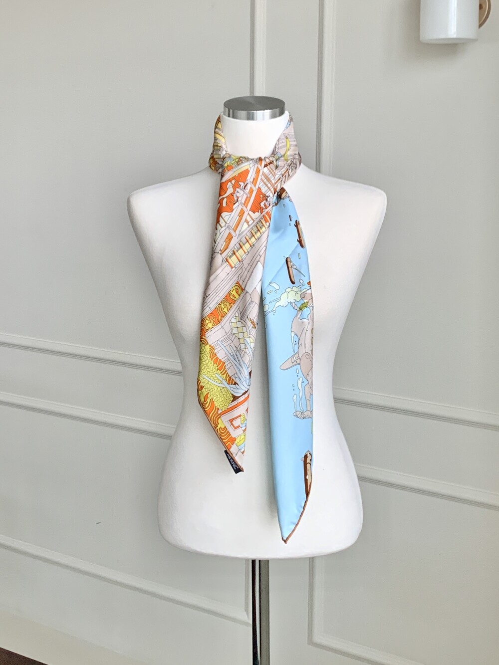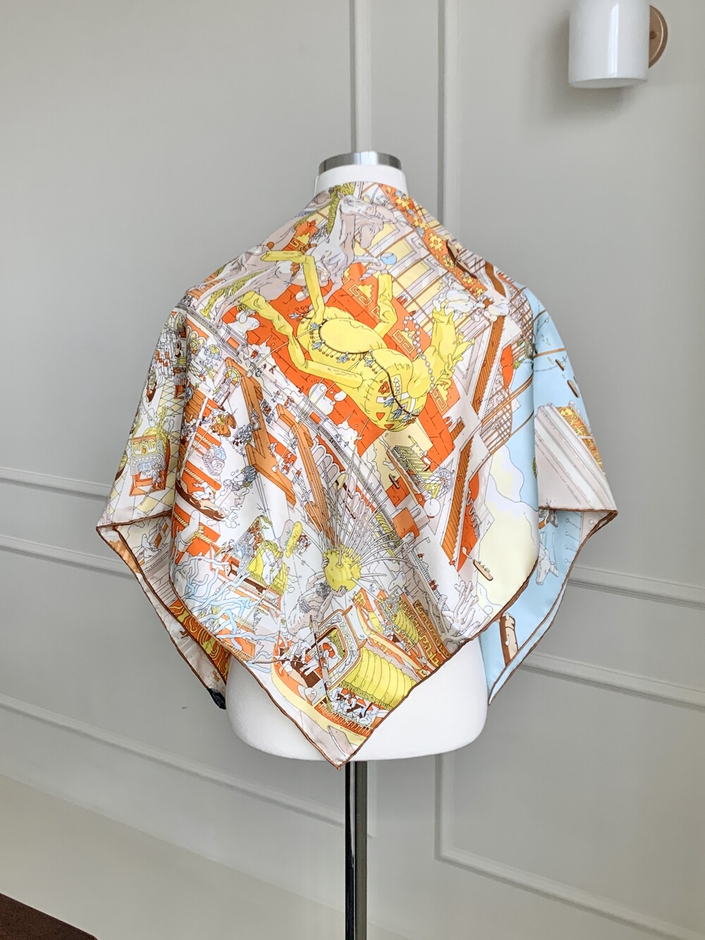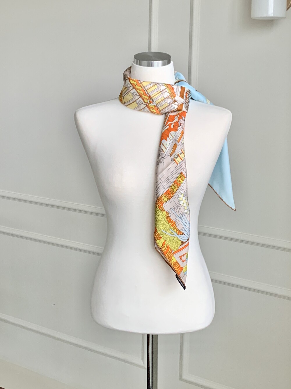 플루메 조각상에서 영감을 받은감각적인 아트워크가 담긴 실크 까레 스카프입니다.