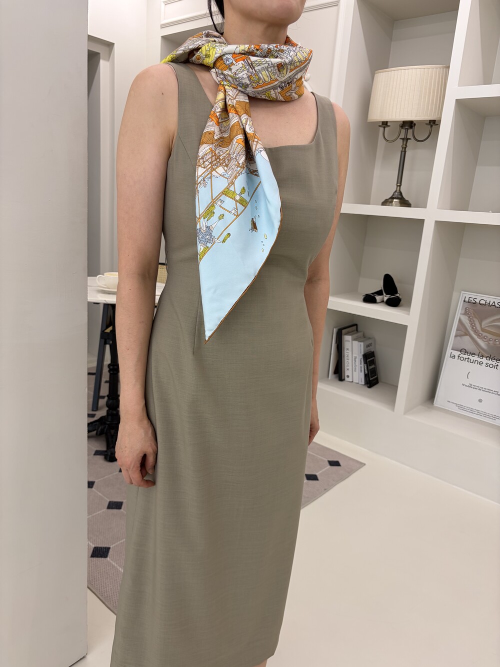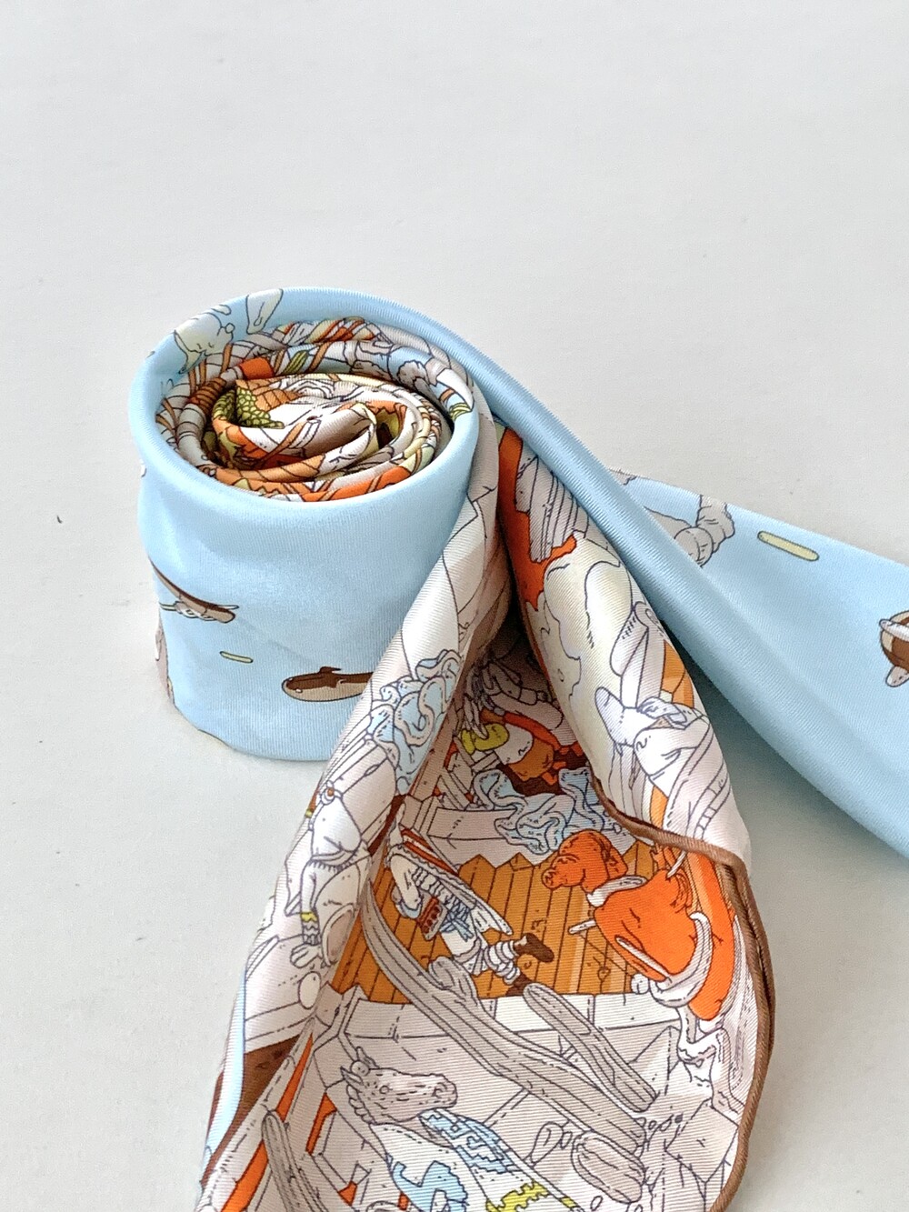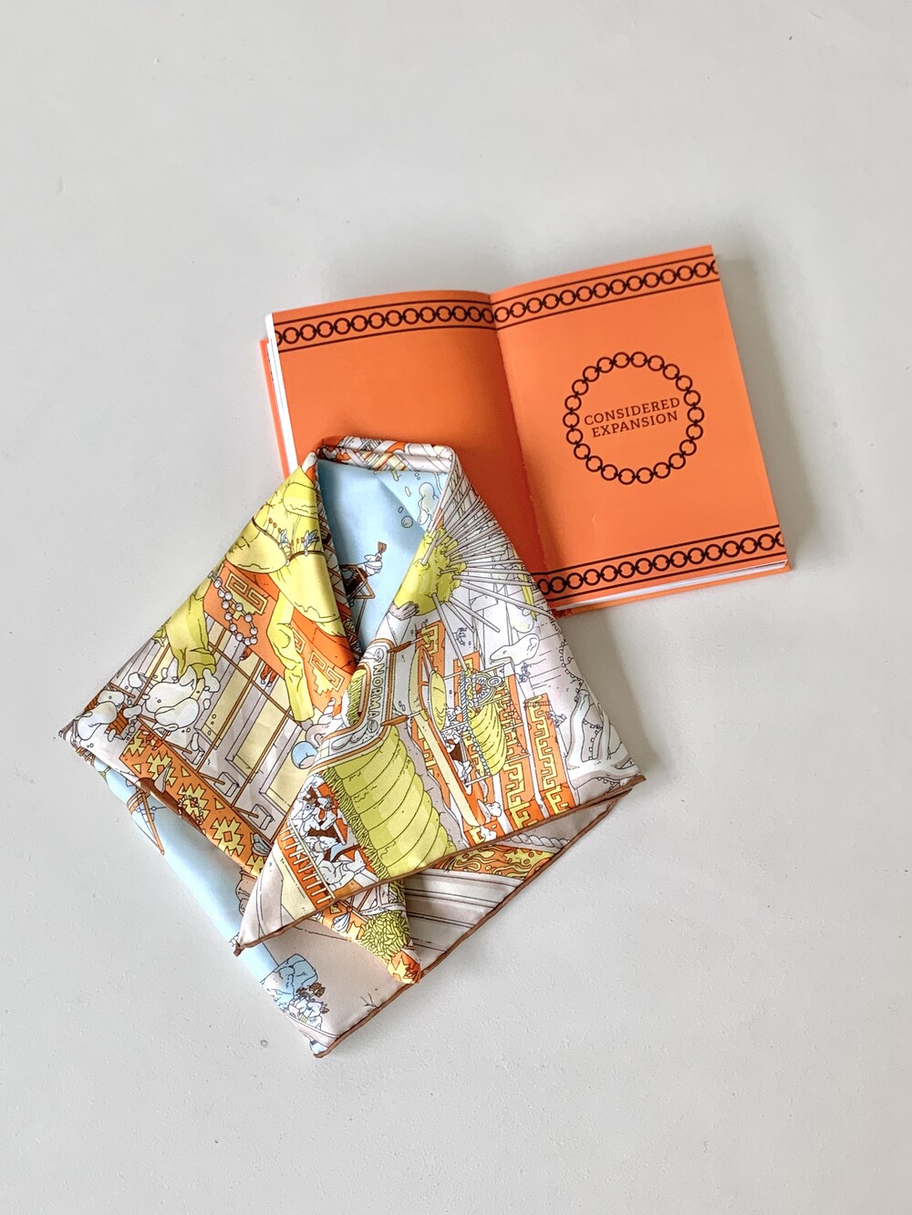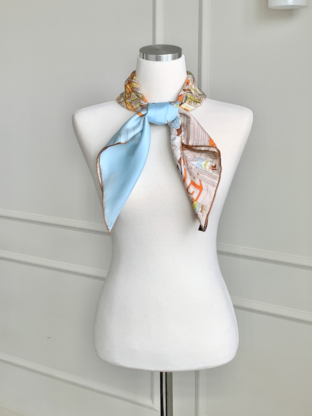 플루메 조각상에서 영감을 받은감각적인 아트워크가 담긴 실크 까레 스카프입니다.