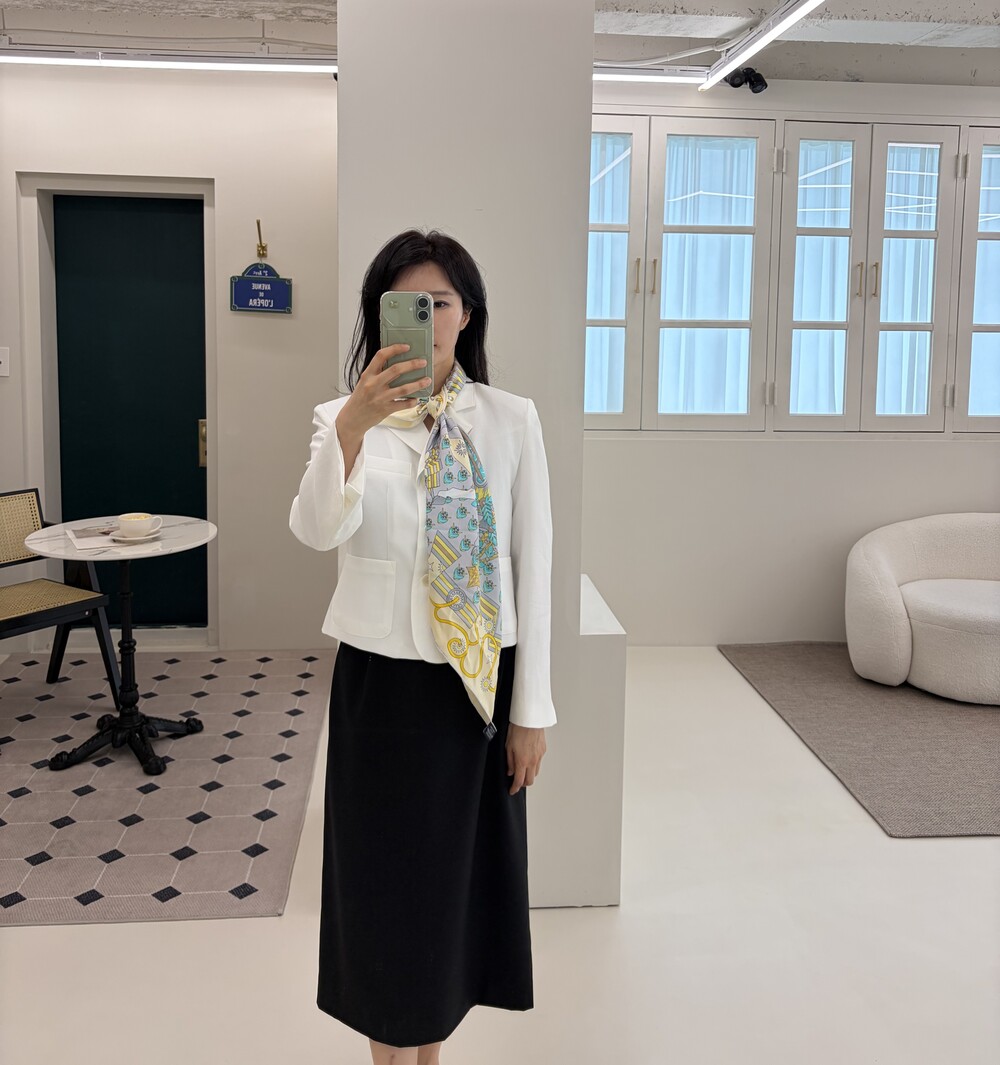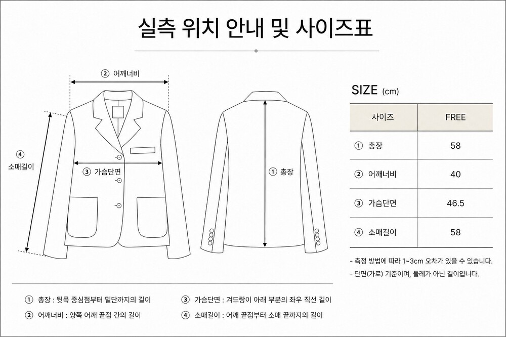 ✔ 클래식 카라 디자인 → 단정하고 깔끔한 인상을 주는 기본 테일러드 카라