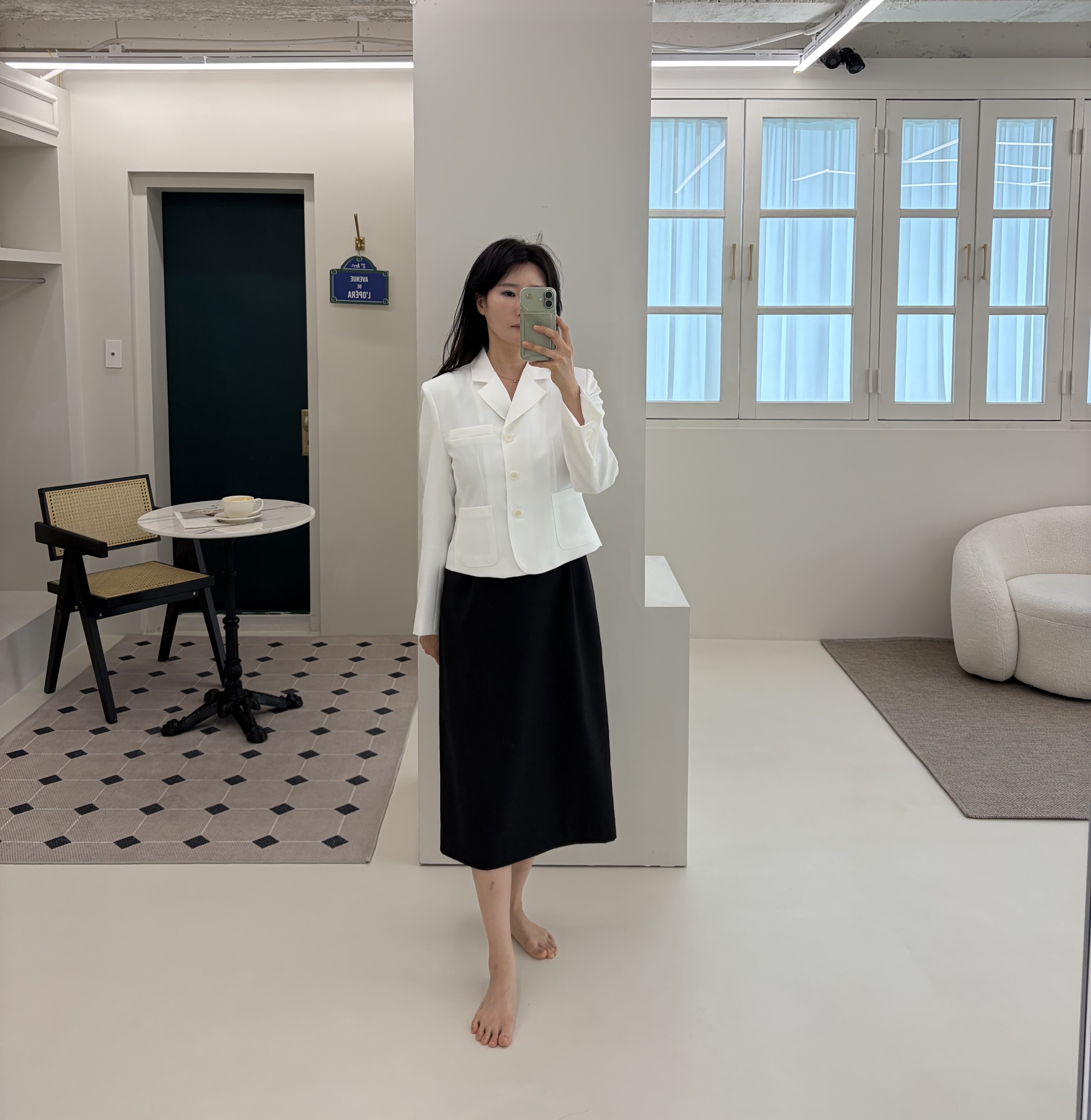 군더더기 없이 정돈된 라인으로 착용했을때 자연스럽게 체형을 정리해주며, 부담 없이 데일리로 입기 좋은 디자인입니다.