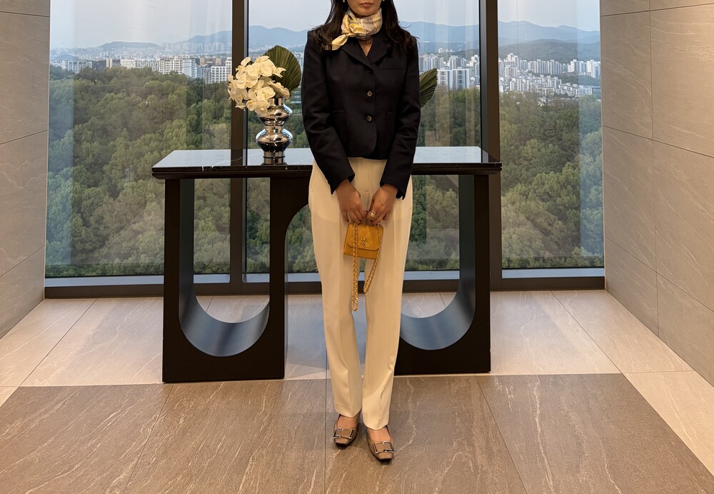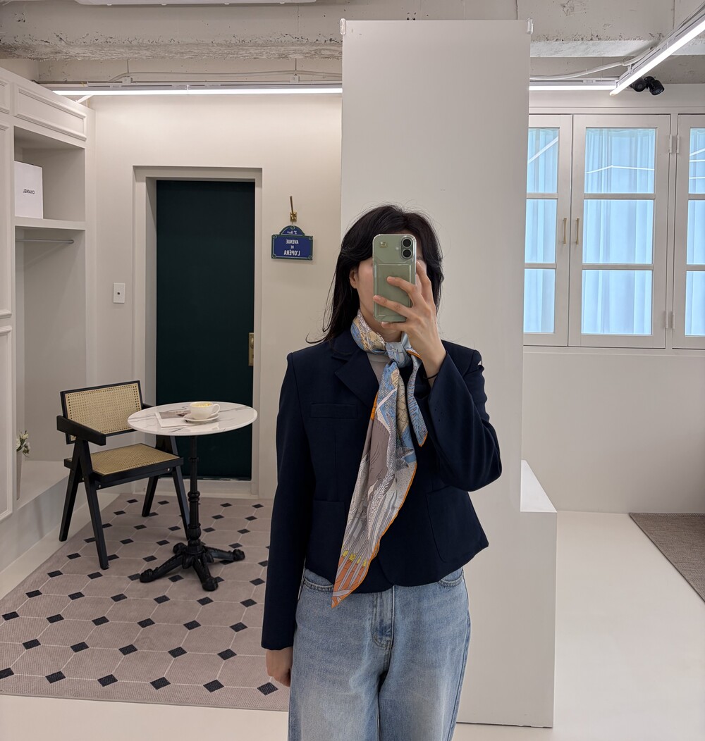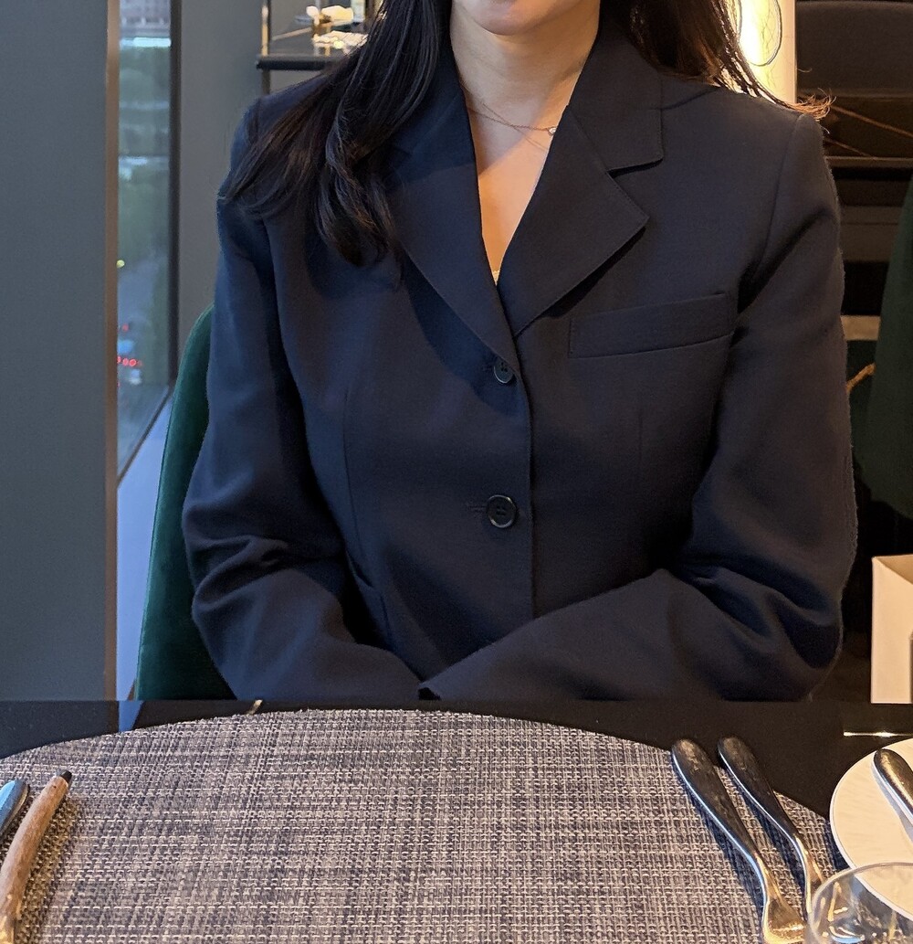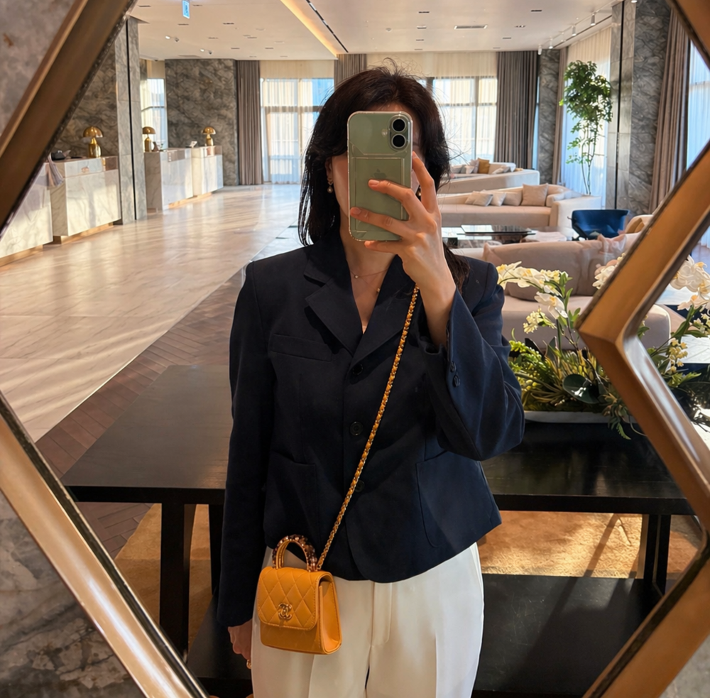 ✔ 클래식 카라 디자인 → 단정하고 깔끔한 인상을 주는 기본 테일러드 카라