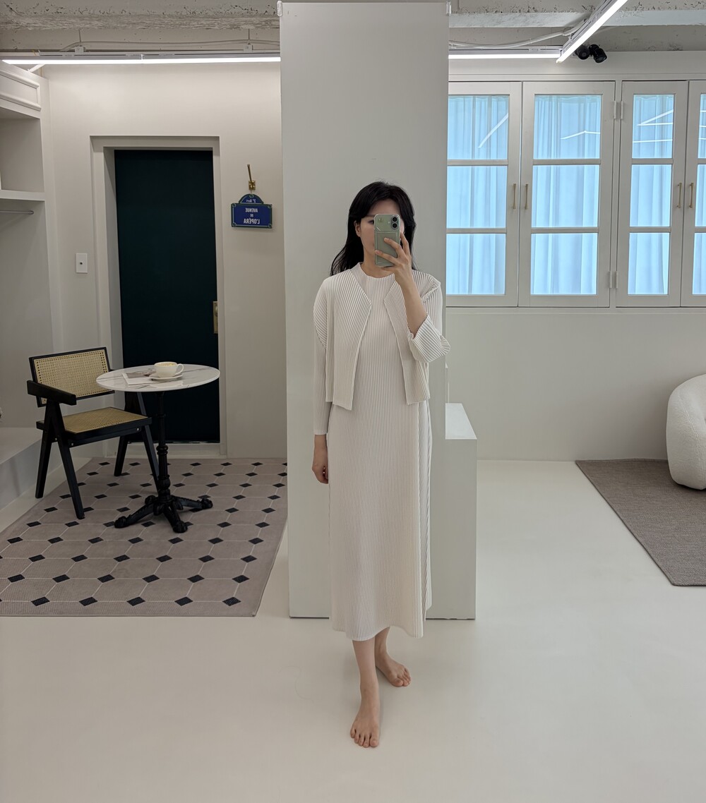 플리츠 셋업 ( 나시원피스+ 가디건)-아이보리