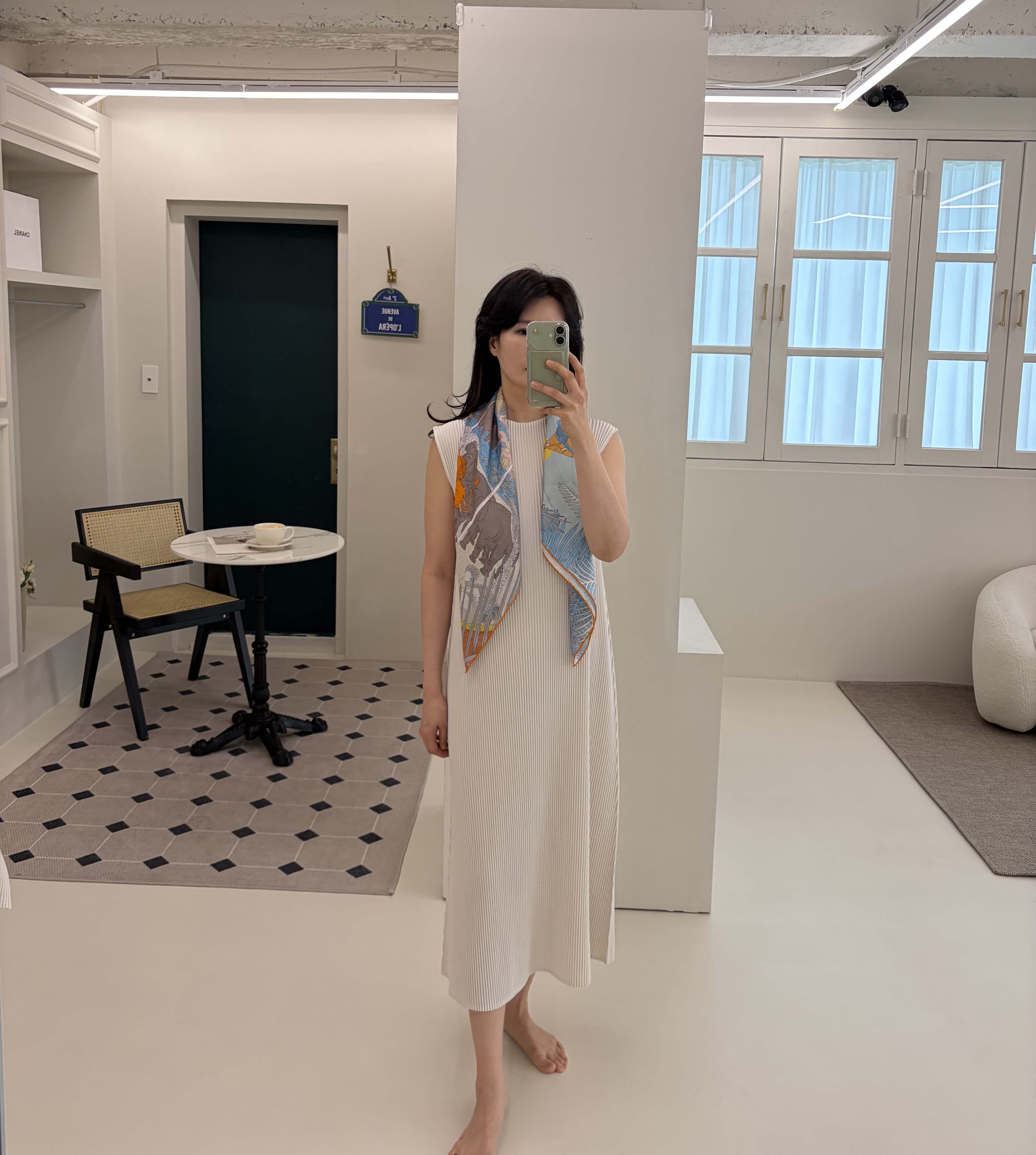 ✔ 롱 기장 원피스 → 발목까지 떨어지는 길이감으로단정하고 안정적인 실루엣
