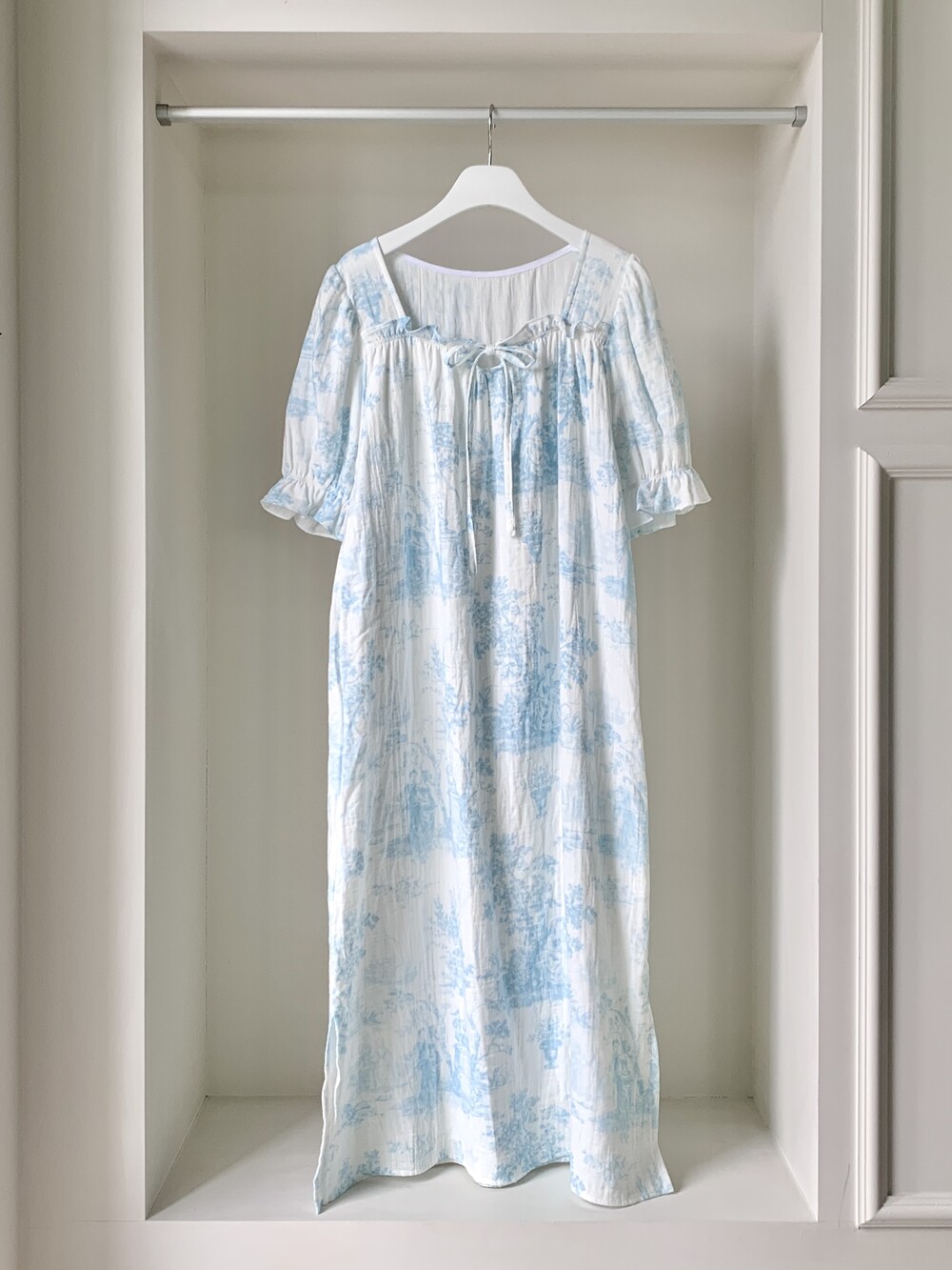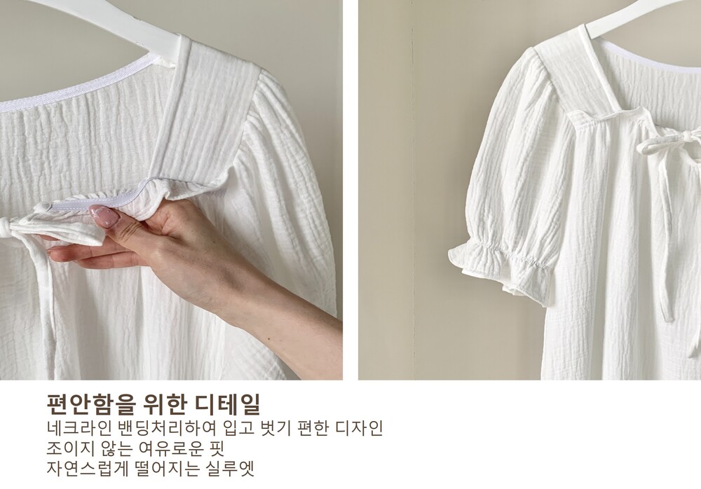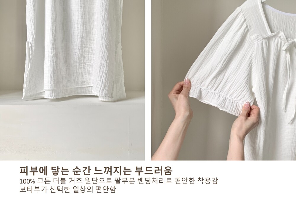 거즈 코튼 특유의 가볍고 포근한 촉감과 우수한 통기성으로 여름에도 쾌적하게 착용 가능합니다.