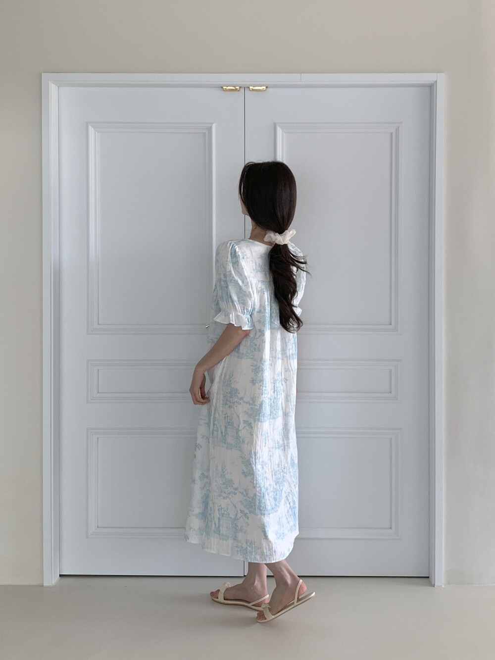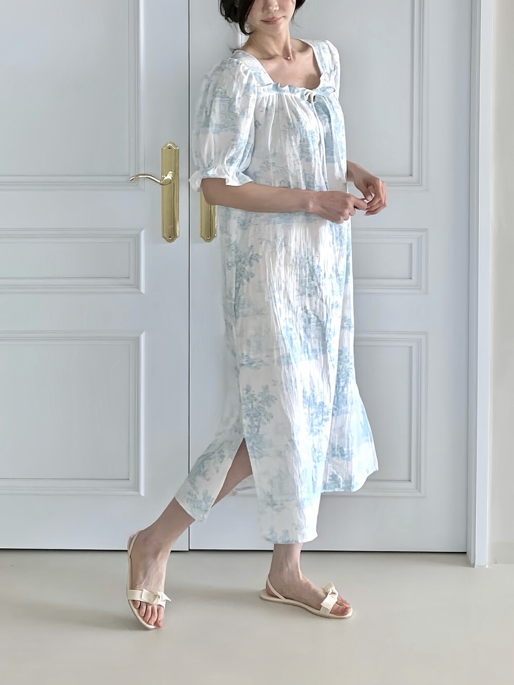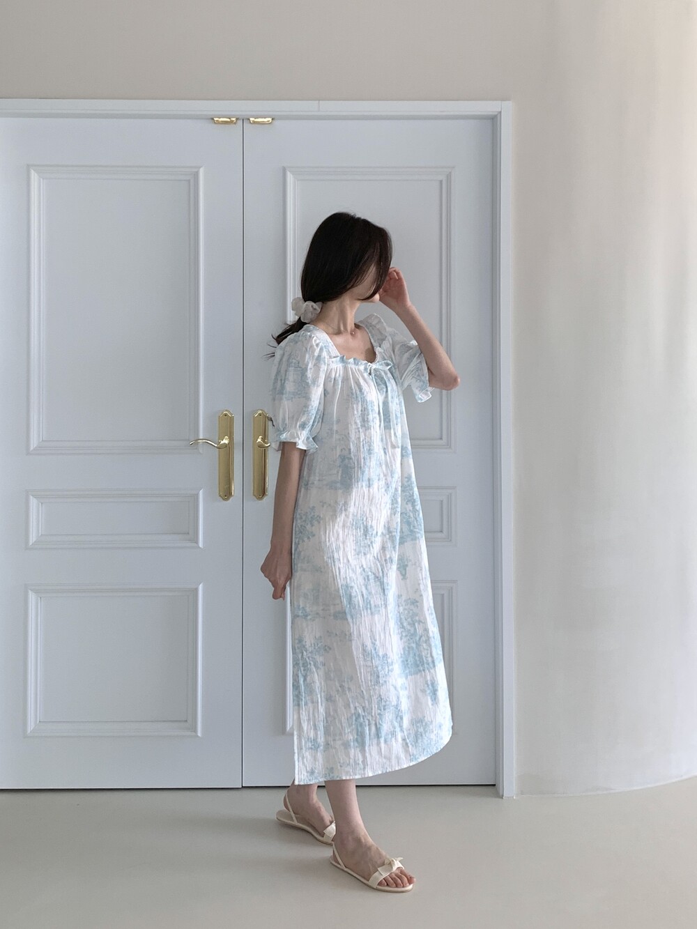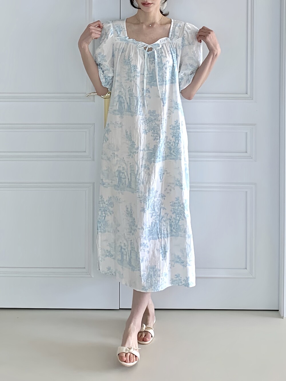 퍼프 소매와 밴딩 마감으로 자연스럽게 잡히는 실루엣을 완성합니다.