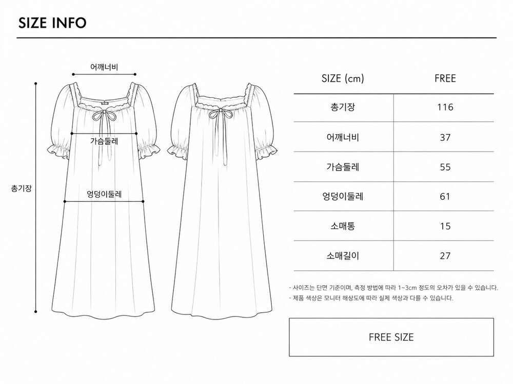 스퀘어 넥 라인에는 부드러운 고무 밴딩을 더해 목을 조이지 않으면서 자연스럽게 핏을 잡아주며,