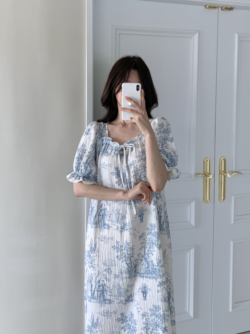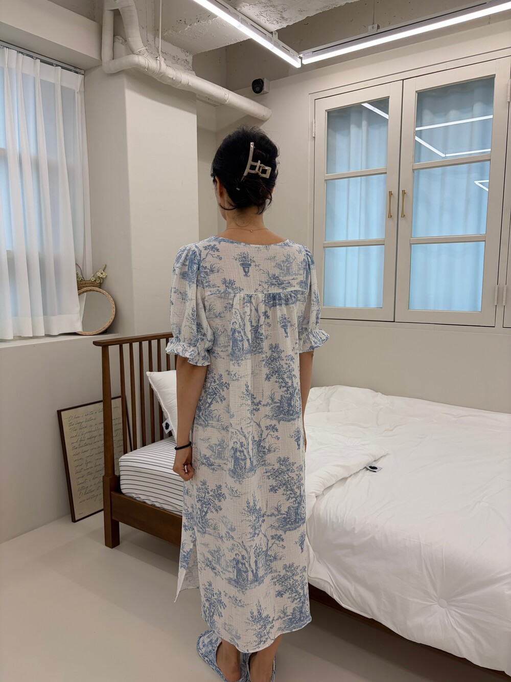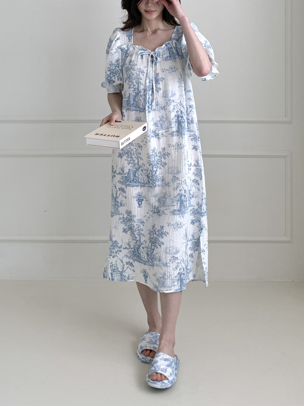 퍼프 소매와 밴딩 마감으로 자연스럽게 잡히는 실루엣을 완성합니다.