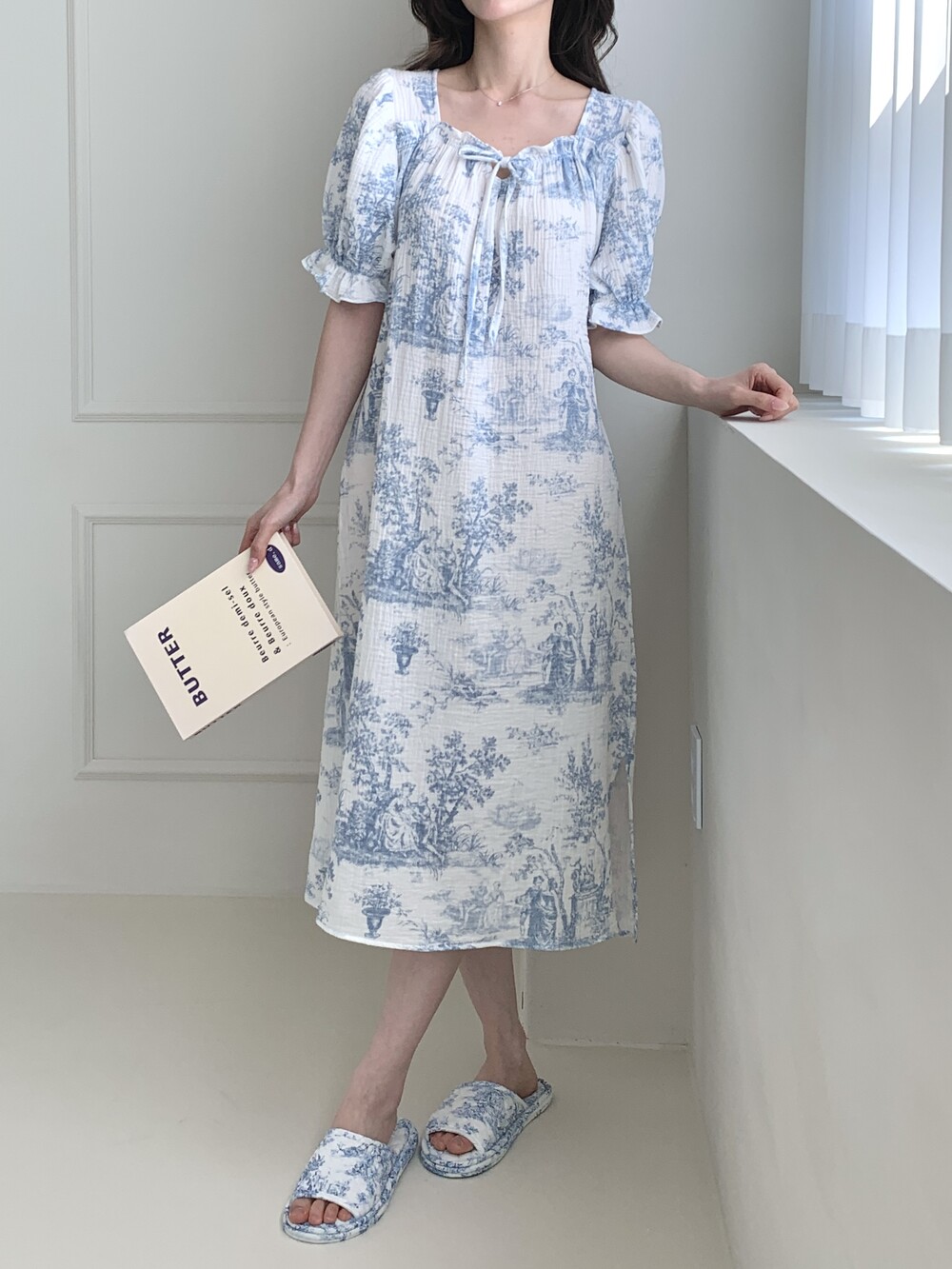 소프트블루코튼원피스(자체제작)