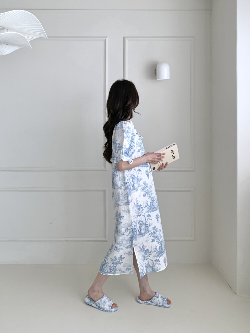 잔잔한 주름감이 살아있는 요루(주름) 코튼 원단으로 제작되어 가볍고 드라이한 터치감을 느낄 수 있습니다.