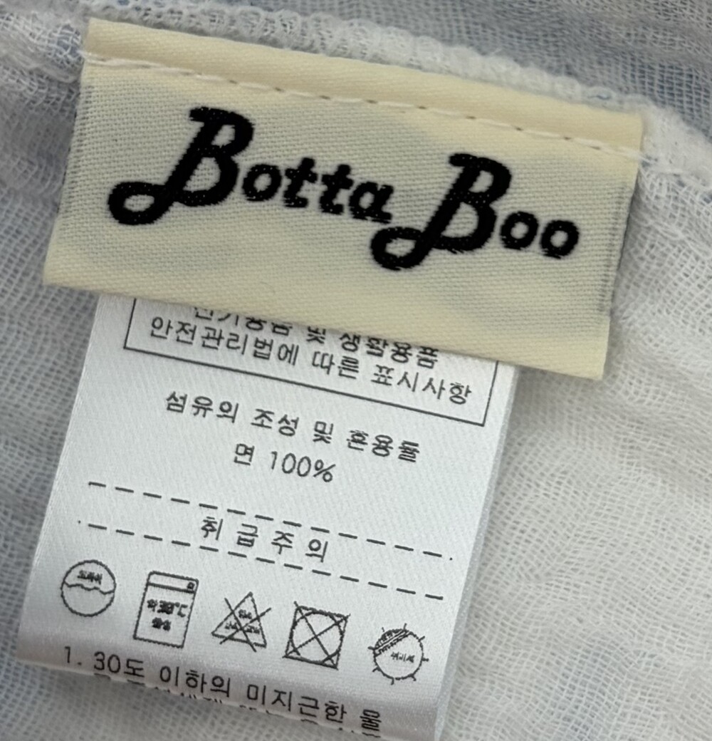 100% 면 원단을 두 번의 바이오 워싱 가공을 거쳐 불순물을 제거하고, 더욱 부드럽고 위생적인 상태로 완성했습니다.