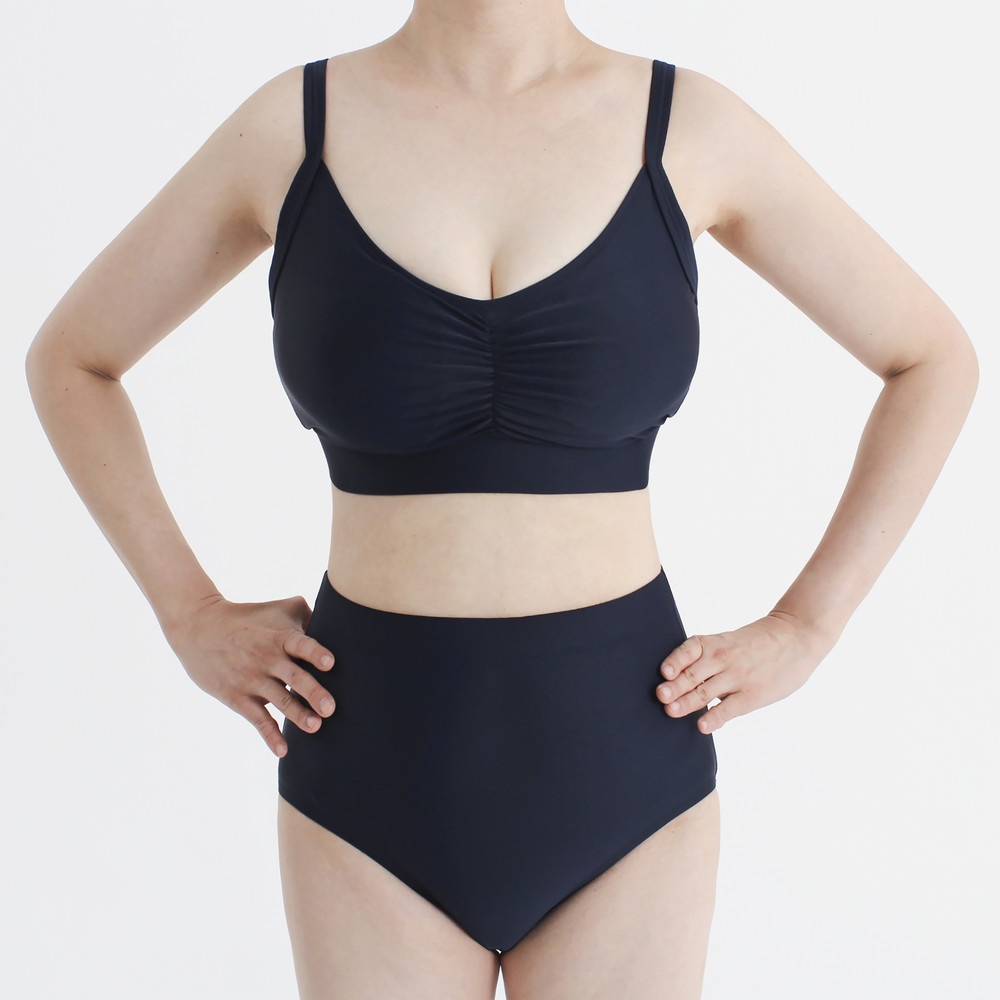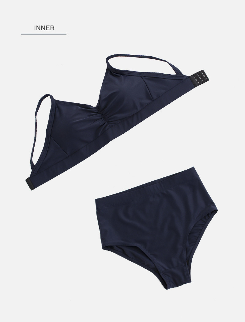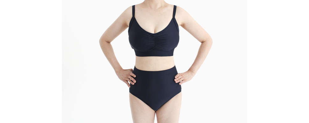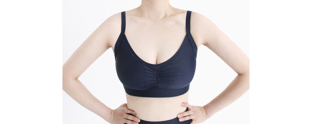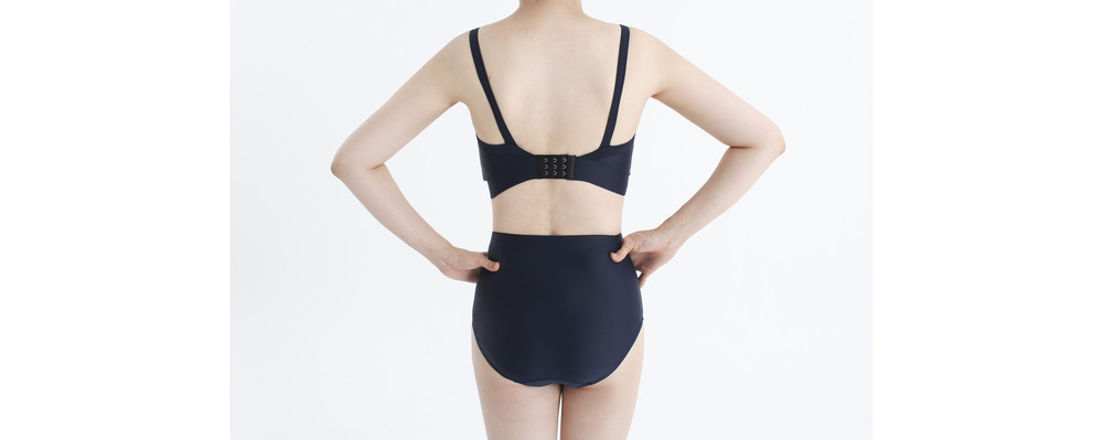 가슴부분을 넓게 디자인하여 좀 더 많은부분을 커버할수 있도록 하였으나 밉지 않으면서 가슴이 안정적으로 유지되도록
