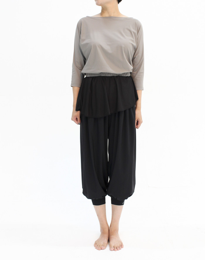 일반 탑을 변형시켜 민망하지 않고 몸매를 드러내지 않으며 동작에 지장을 주지 않아